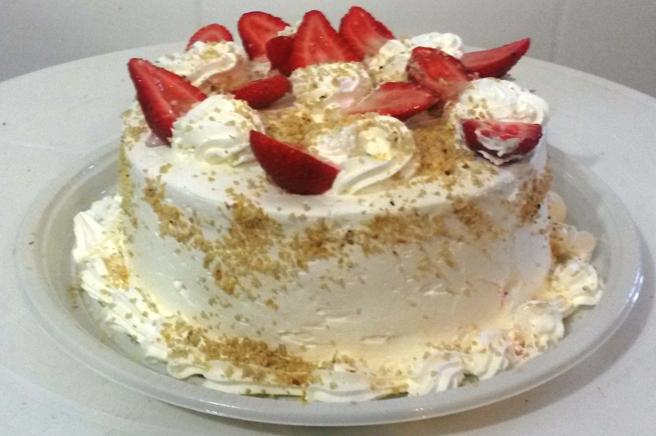 Essa receita é leve e saborosa, elaborada com pão de ló branco, recheada e coberta com morangos e nata.